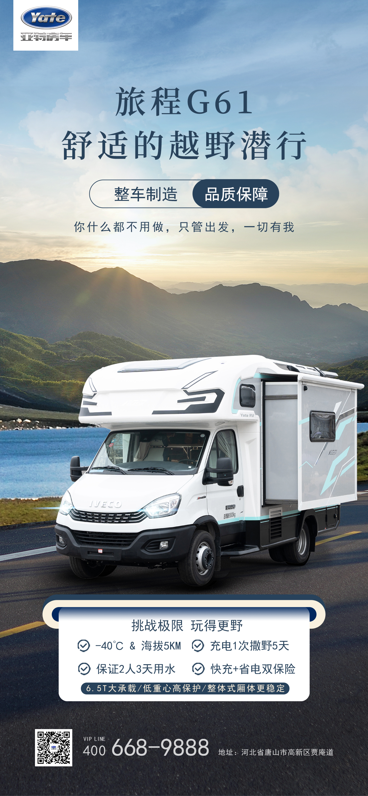 2023.09.22企业新闻 挑战极限,玩得更野!旅程G61,你只管出发,一切有我 打印本页 90人查看 上一条秋季房车保养常识,露水或加快车身腐蚀 2023-09-06 下一条亚特尊领DT PRO,解决带娃出门的烦恼 2023-09-19